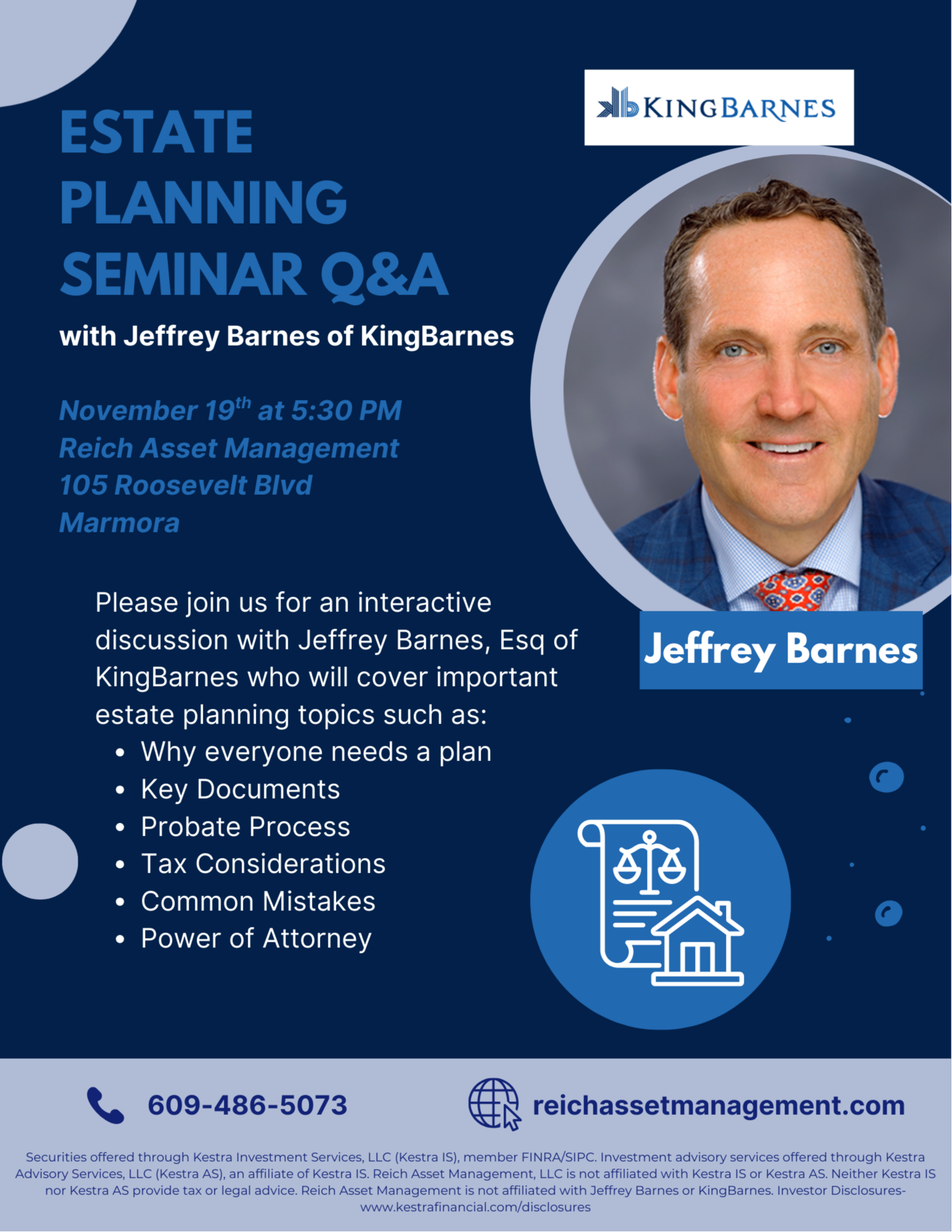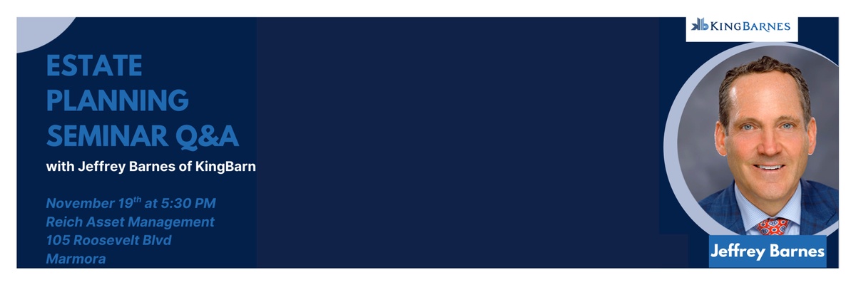 Please join us for an interactive discussion with Jeffrey Barnes, Esq of KingBarnes who will cover important estate planning topics.