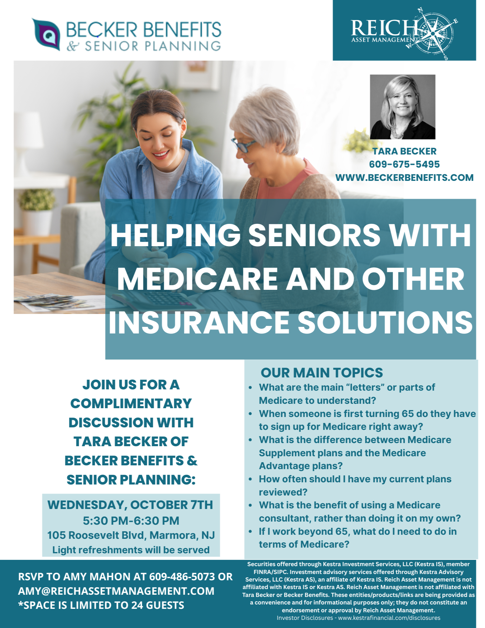 Join us for a complimentary discussion on Medicare with Tara Becker of Becker Benefits & Senior Planning.