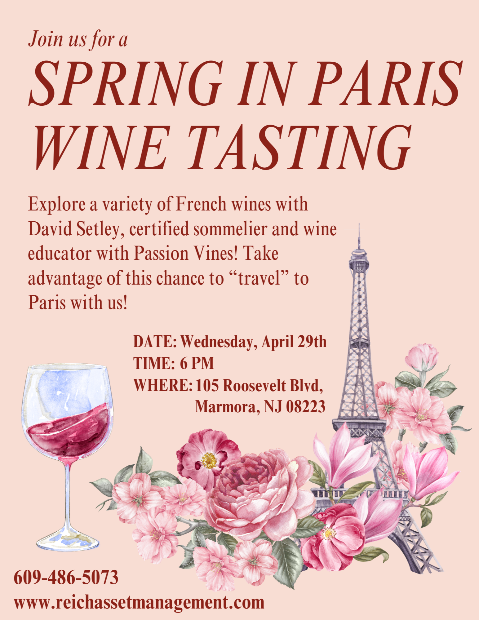 Join us for an unforgettable evening as we “travel” to Paris for a special Spring wine tasting experience.